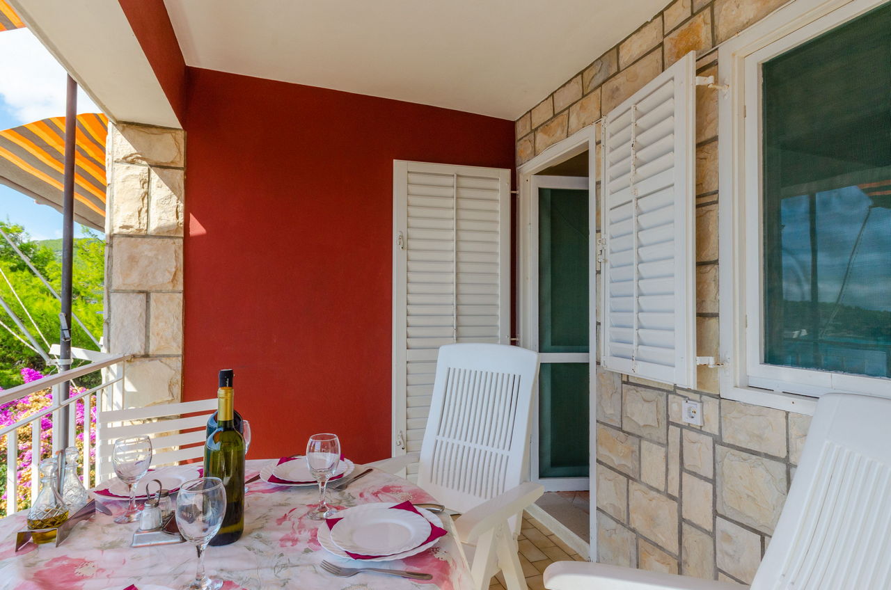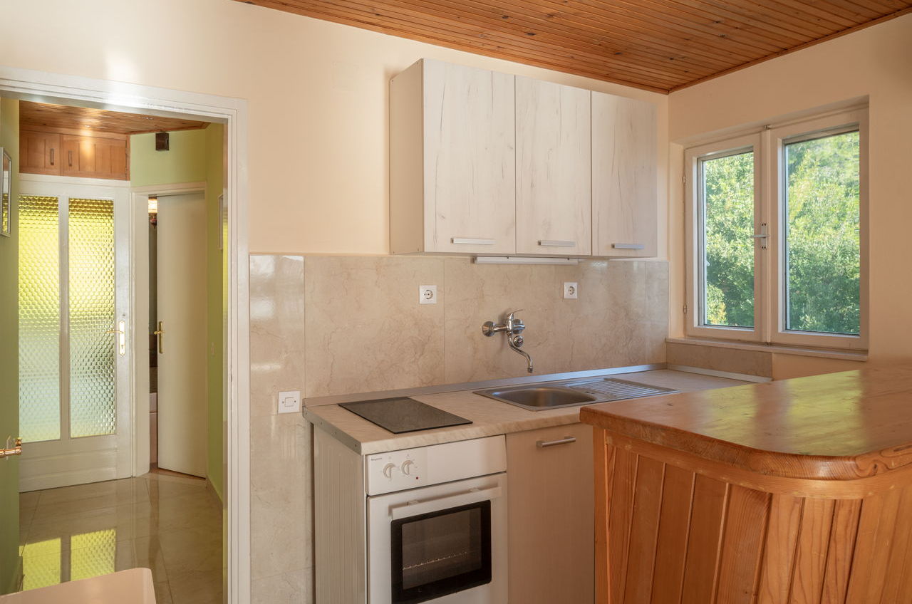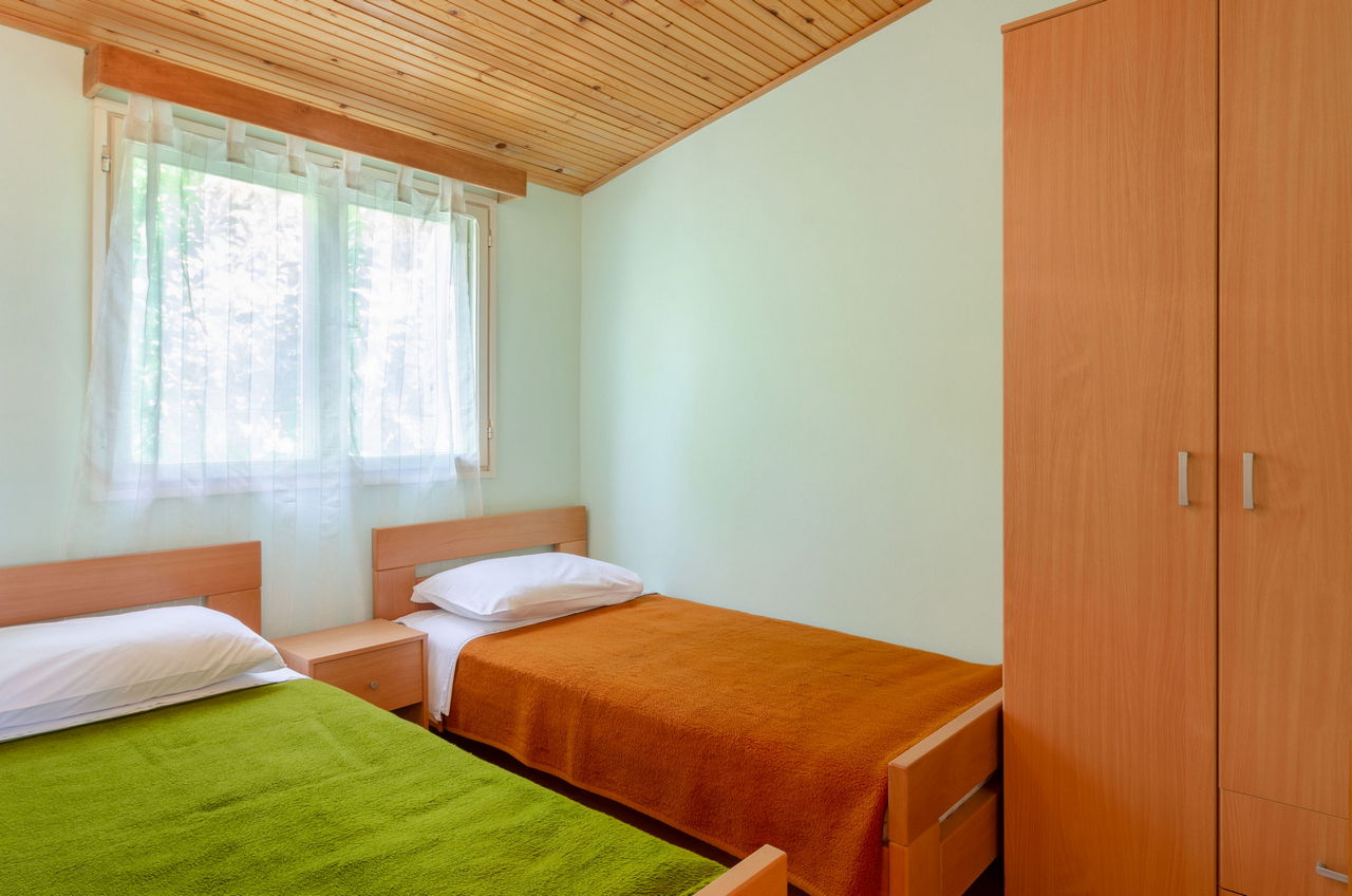 This apartment is for 2+2 persons. It has one sleeping room with two single beds. One double bed is in the living room. The apartment has a bathroom with a shower. The apartment has fully equipped kitchen (kitchen with owen, refrigerator, dishes). There is a SAT TV in the apartment. The apartment has a nice veranda-terrace with a view to the sea. |