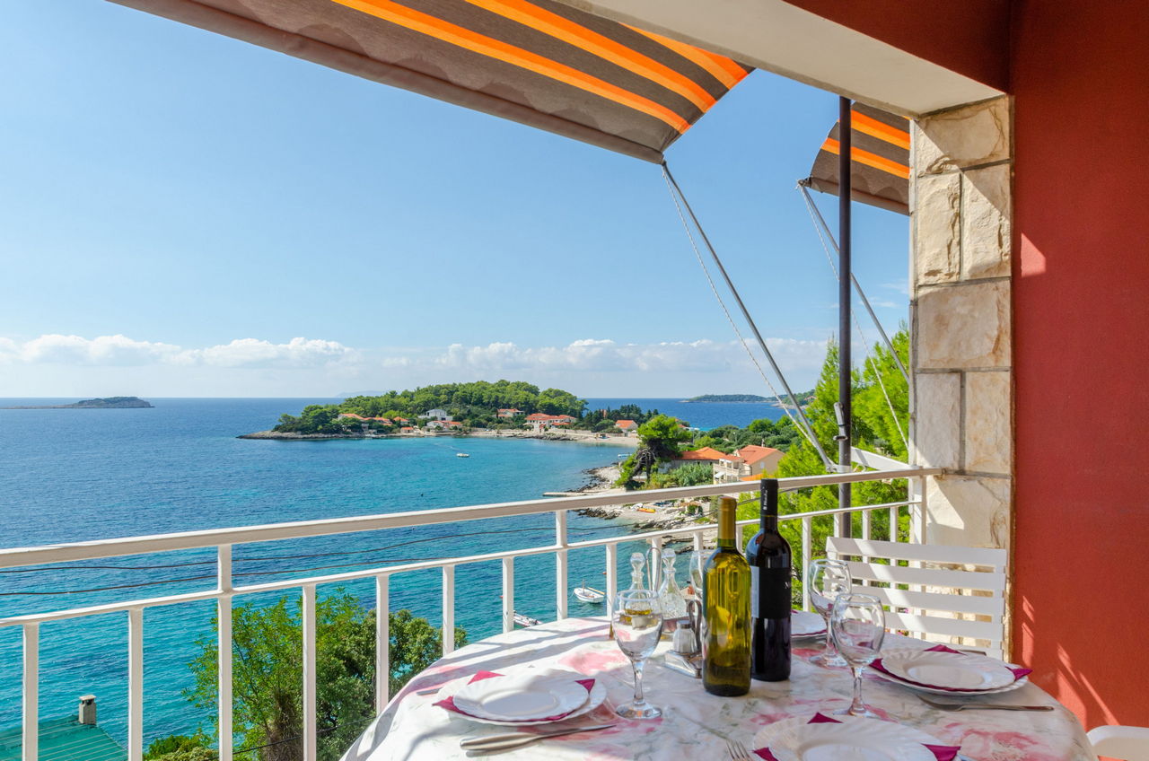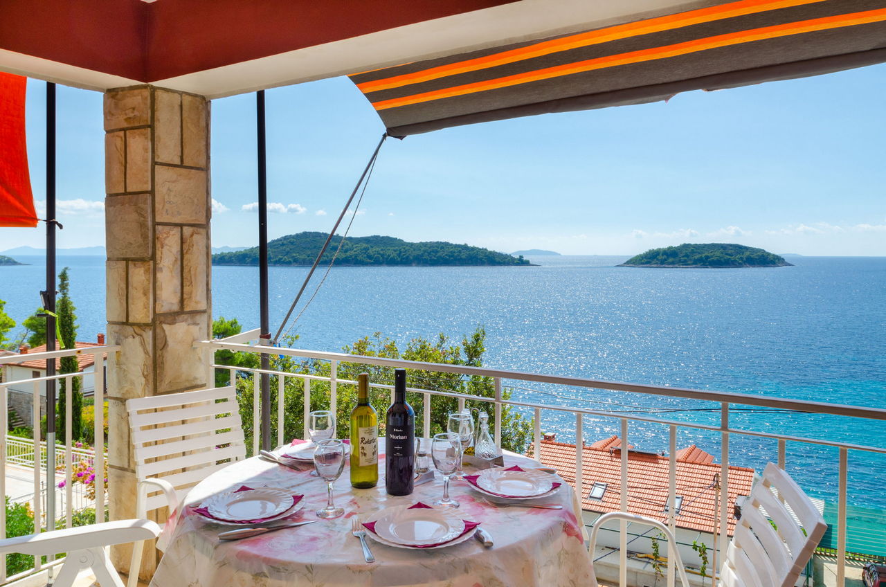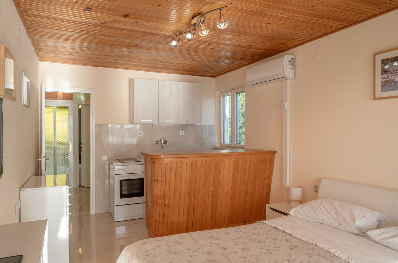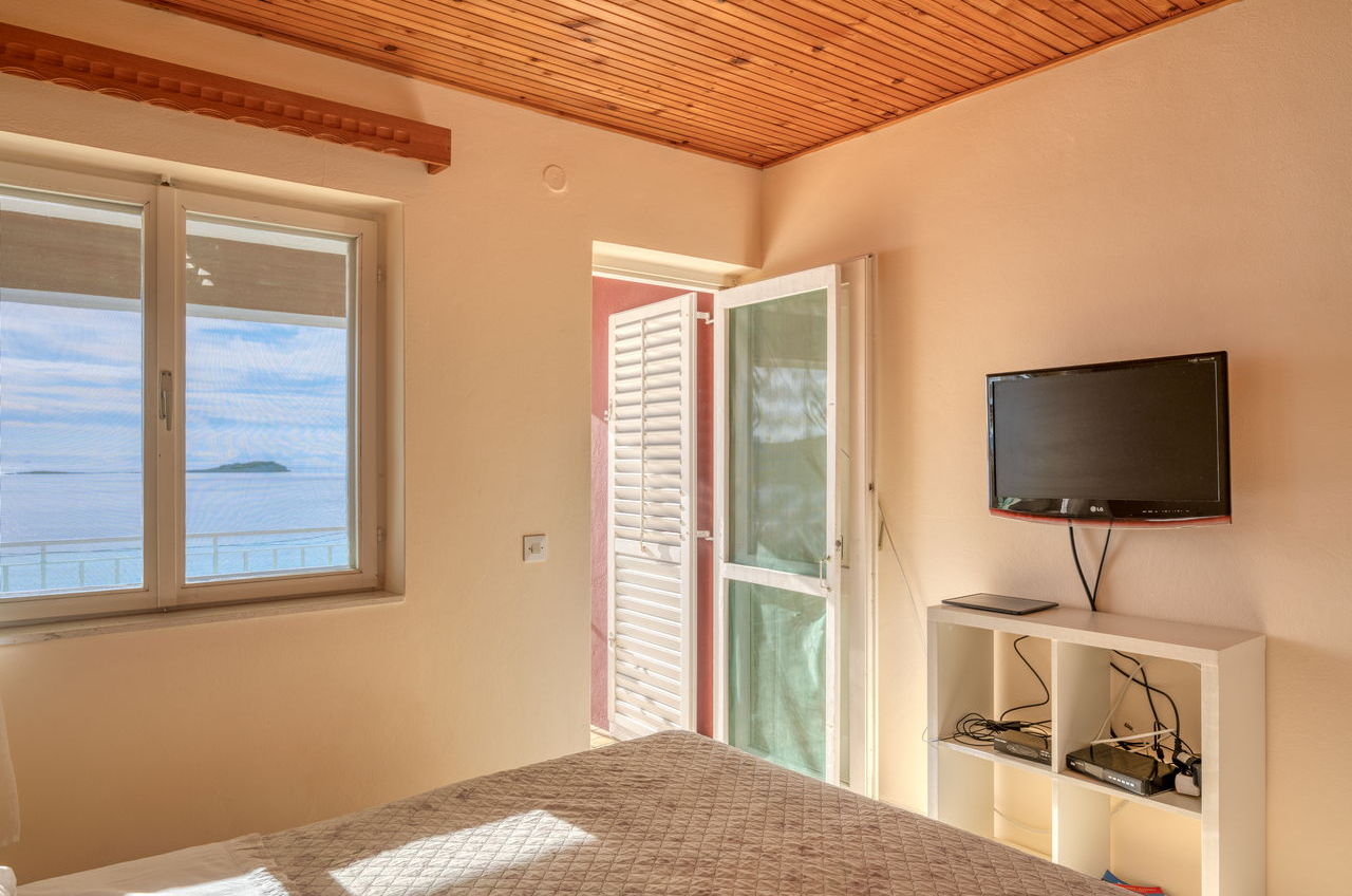 This apartment is for 2+2 persons. It has one sleeping room with two single beds. One double bed is in the living room. The apartment has a bathroom with a shower. The apartment has fully equipped kitchen (kitchen with owen, refrigerator, dishes). There is a SAT TV in the apartment. The apartment has a nice veranda-terrace with a view to the sea. |