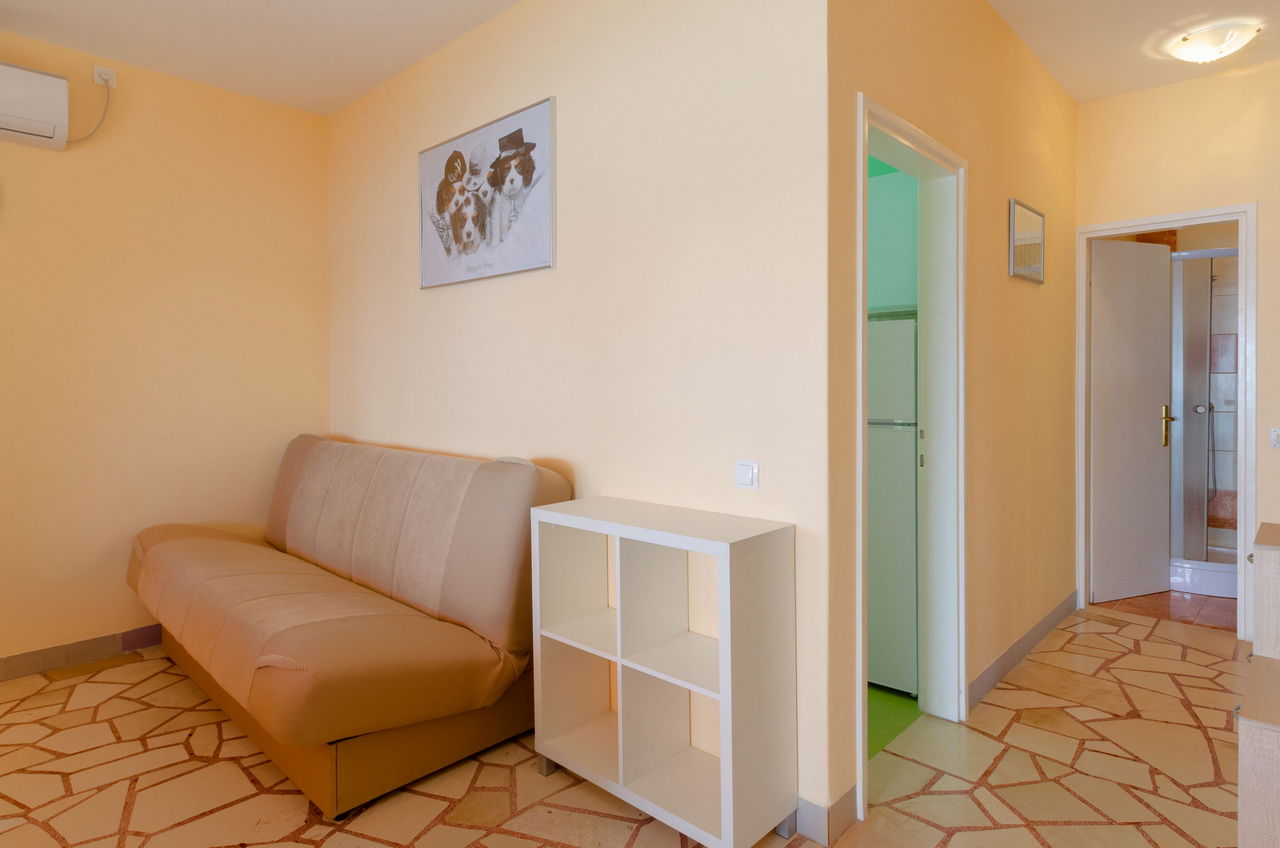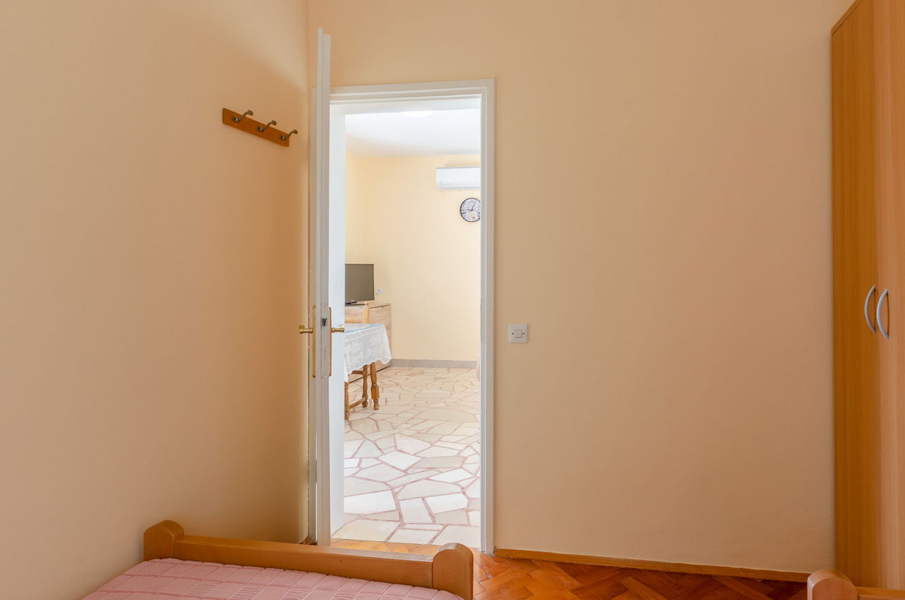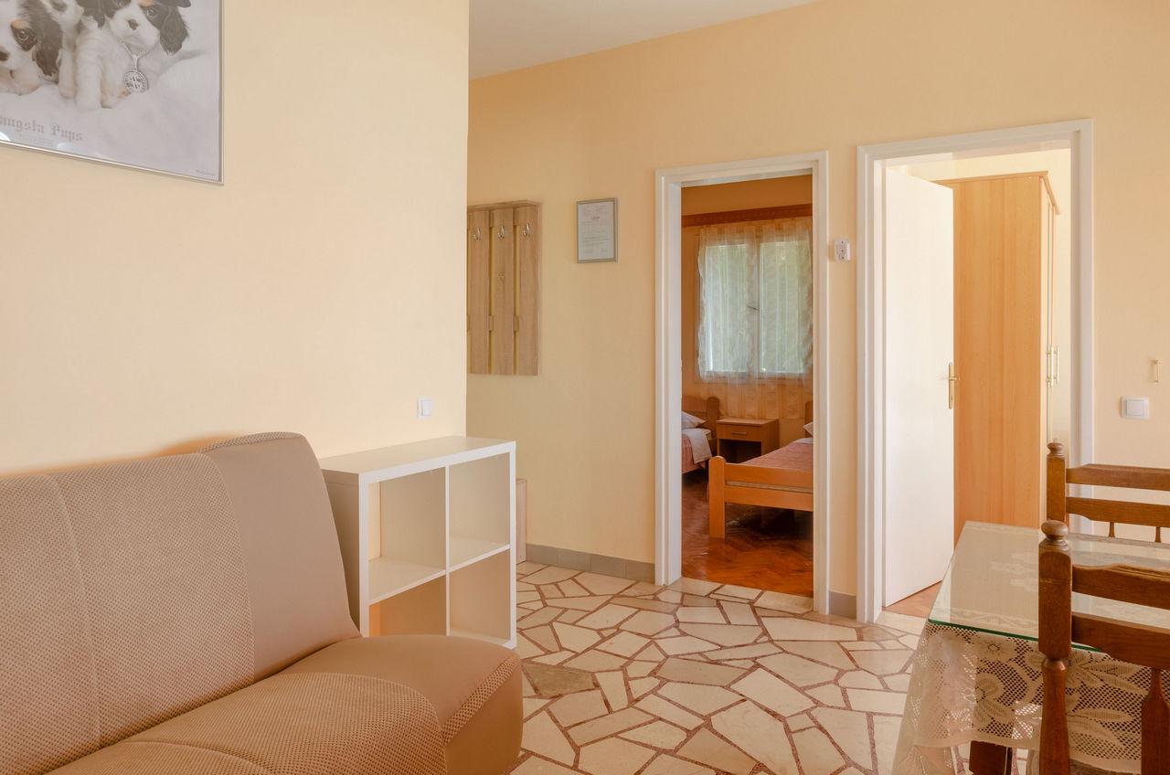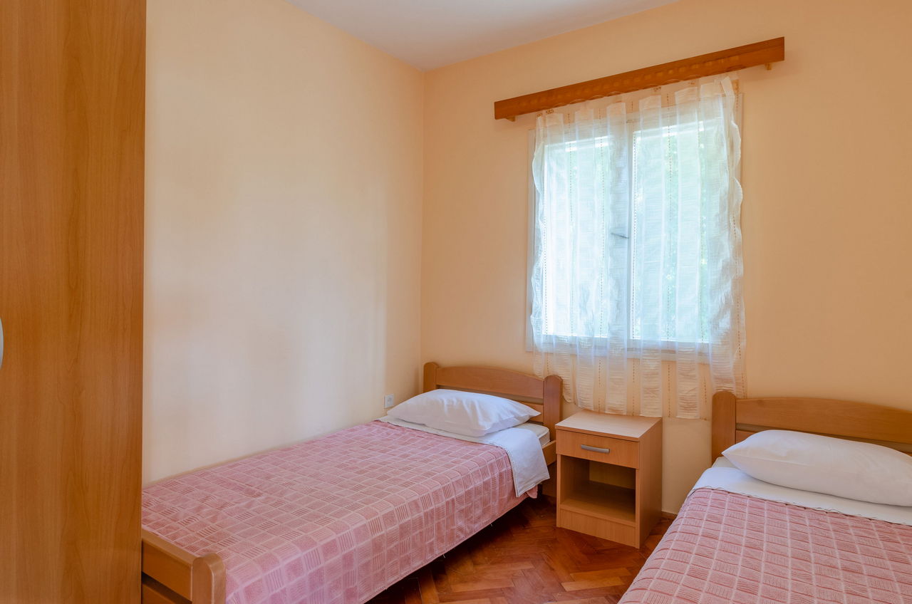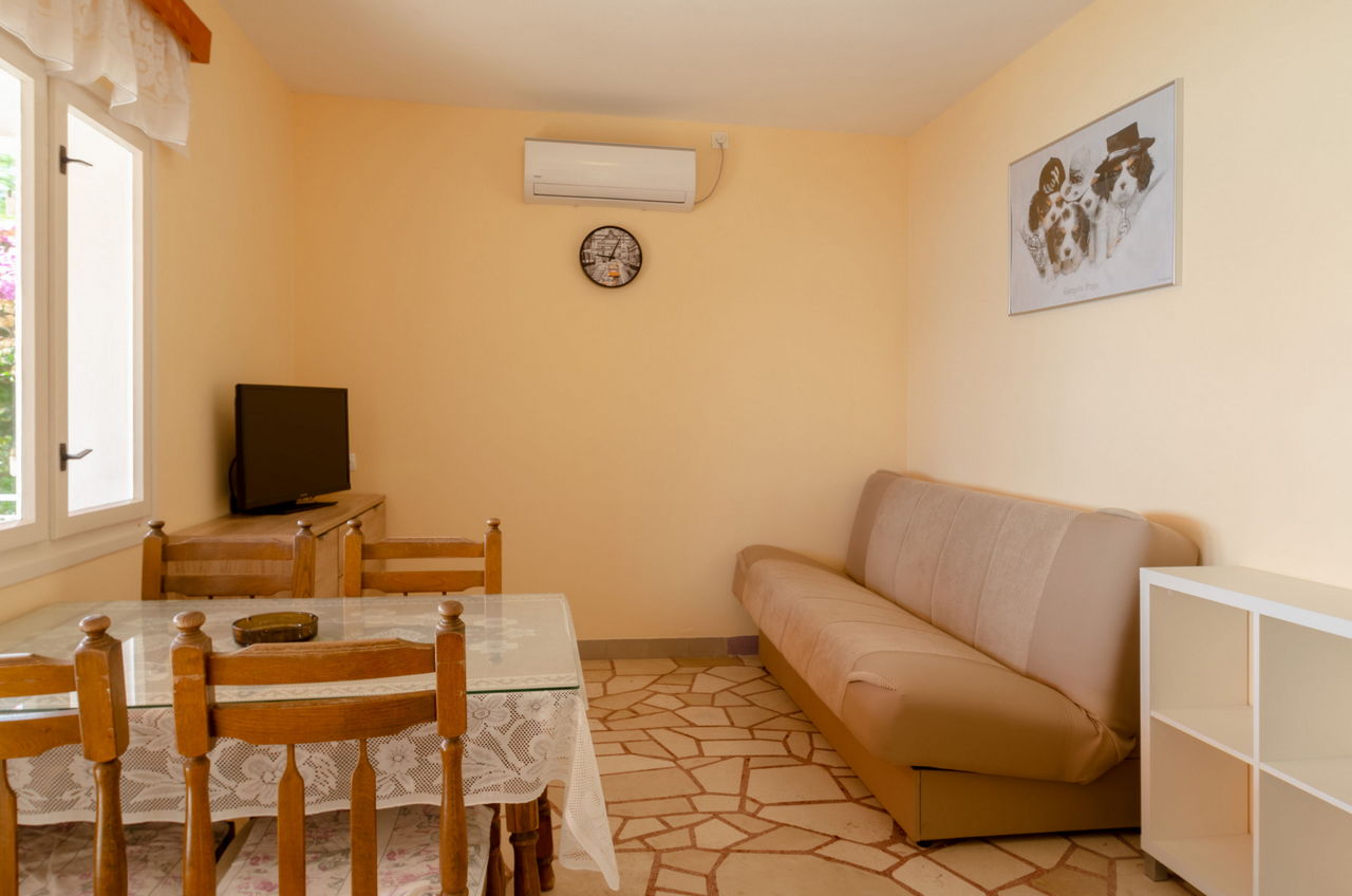 This apartment is for 4-6 persons. It has one sleeping room with two single beds and a second sleeping room with a double bed. One sofa bed is in the comfortable living room The apartment has a bathroom with a shower. The apartment has fully equipped kitchen (kitchen with owen, refrigerator/freezer, dishes). There is a SAT TV in the apartment. The apartment has nice veranda-terrace with a view to the sea. |