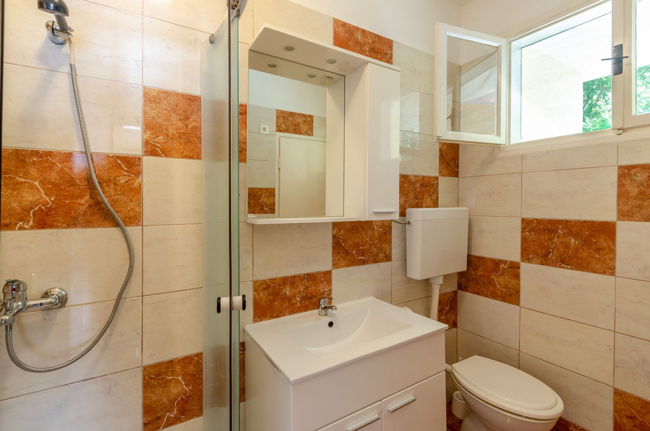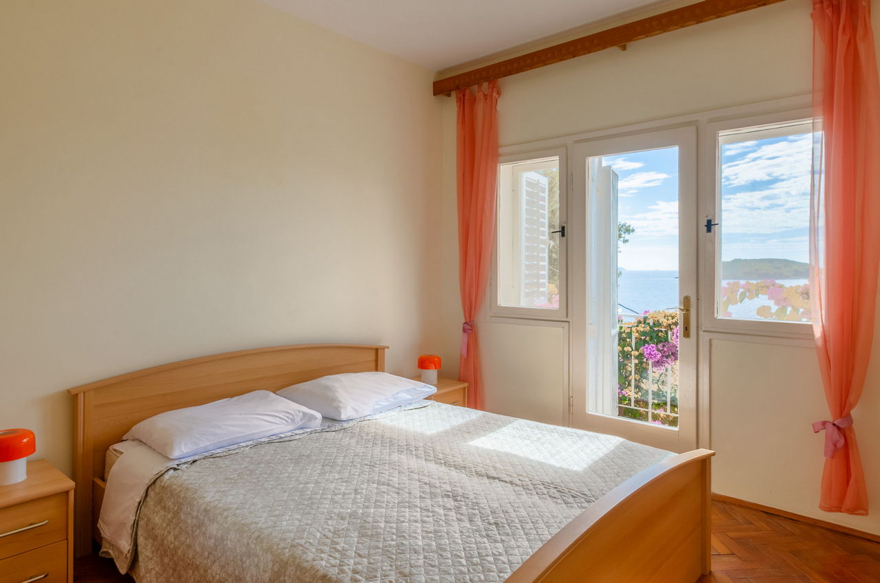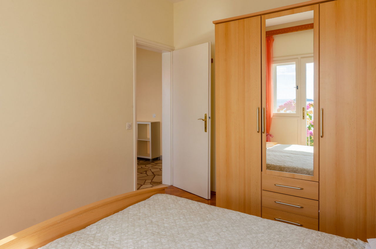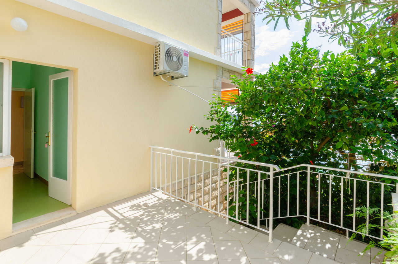 This apartment is for 4-6 persons. It has one sleeping room with two single beds and a second sleeping room with a double bed. One sofa bed is in the comfortable living room The apartment has a bathroom with a shower. The apartment has fully equipped kitchen (kitchen with owen, refrigerator/freezer, dishes). There is a SAT TV in the apartment. The apartment has nice veranda-terrace with a view to the sea. |