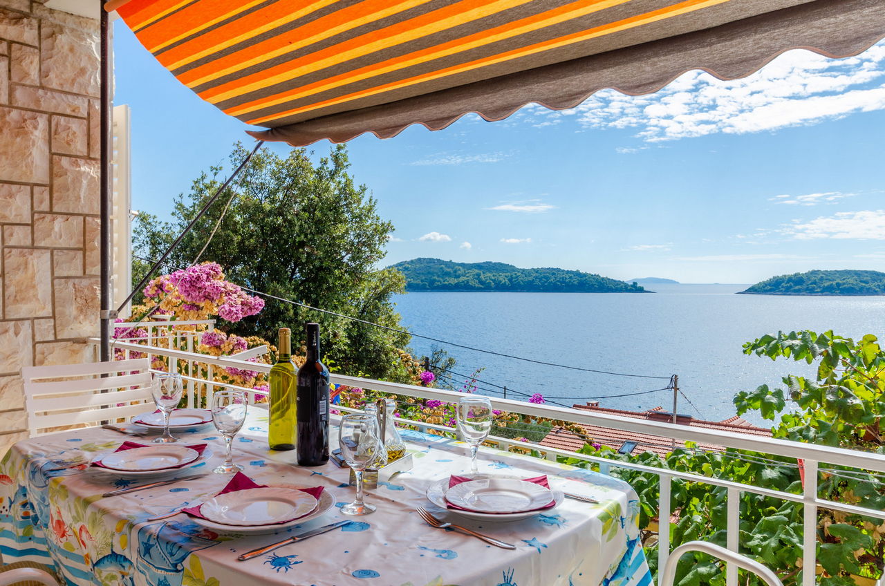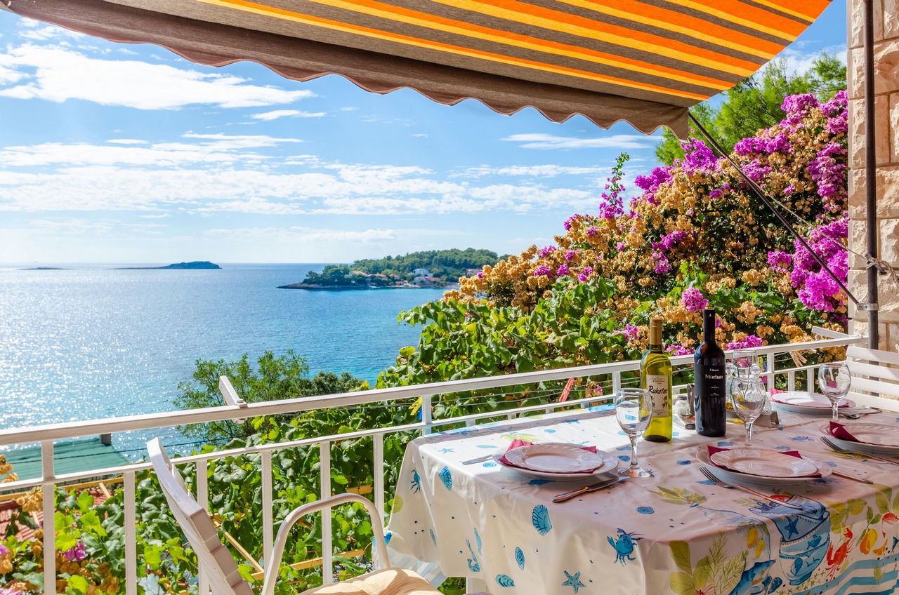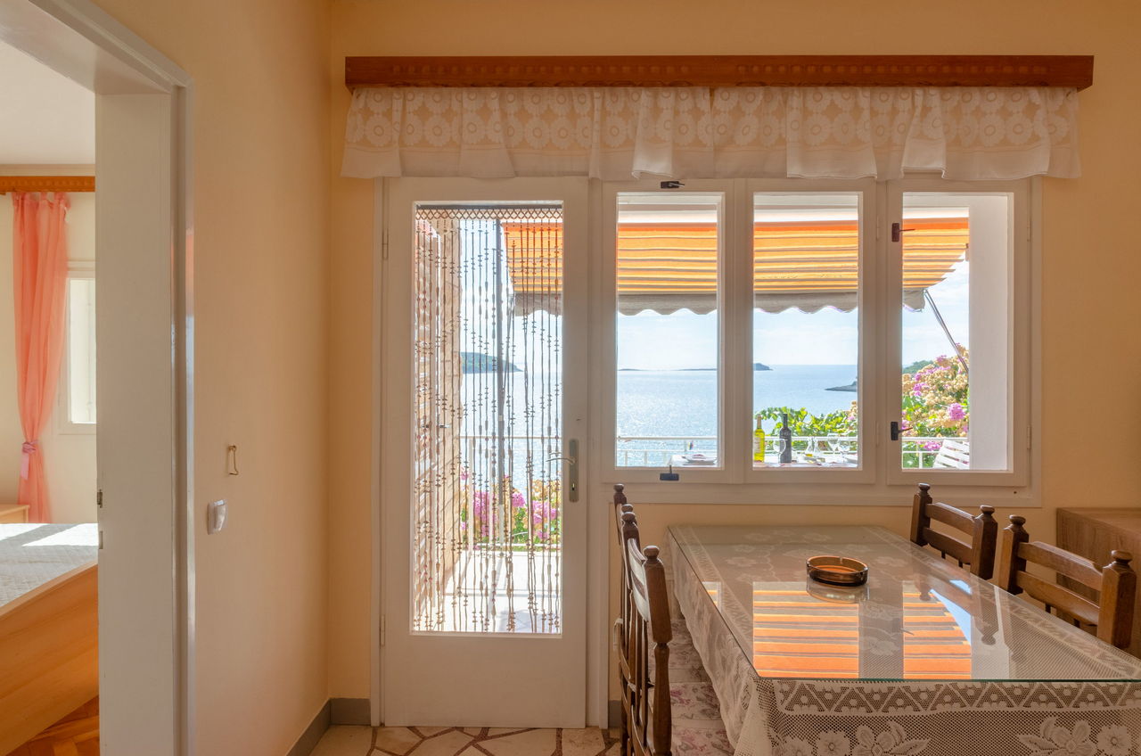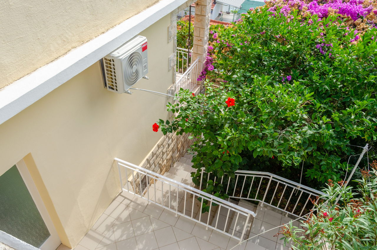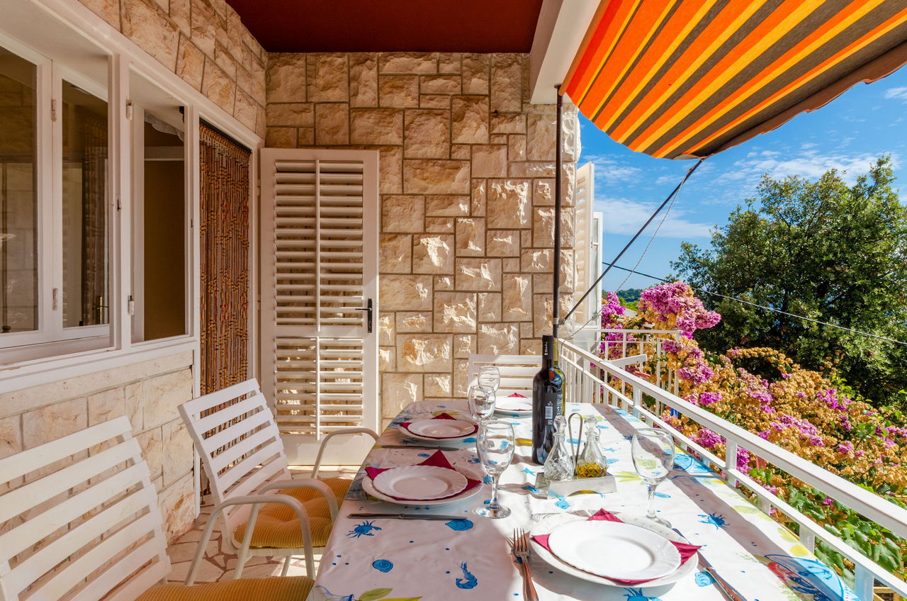 This apartment is for 4-6 persons. It has one sleeping room with two single beds and a second sleeping room with a double bed. One sofa bed is in the comfortable living room The apartment has a bathroom with a shower. The apartment has fully equipped kitchen (kitchen with owen, refrigerator/freezer, dishes). There is a SAT TV in the apartment. The apartment has nice veranda-terrace with a view to the sea. |